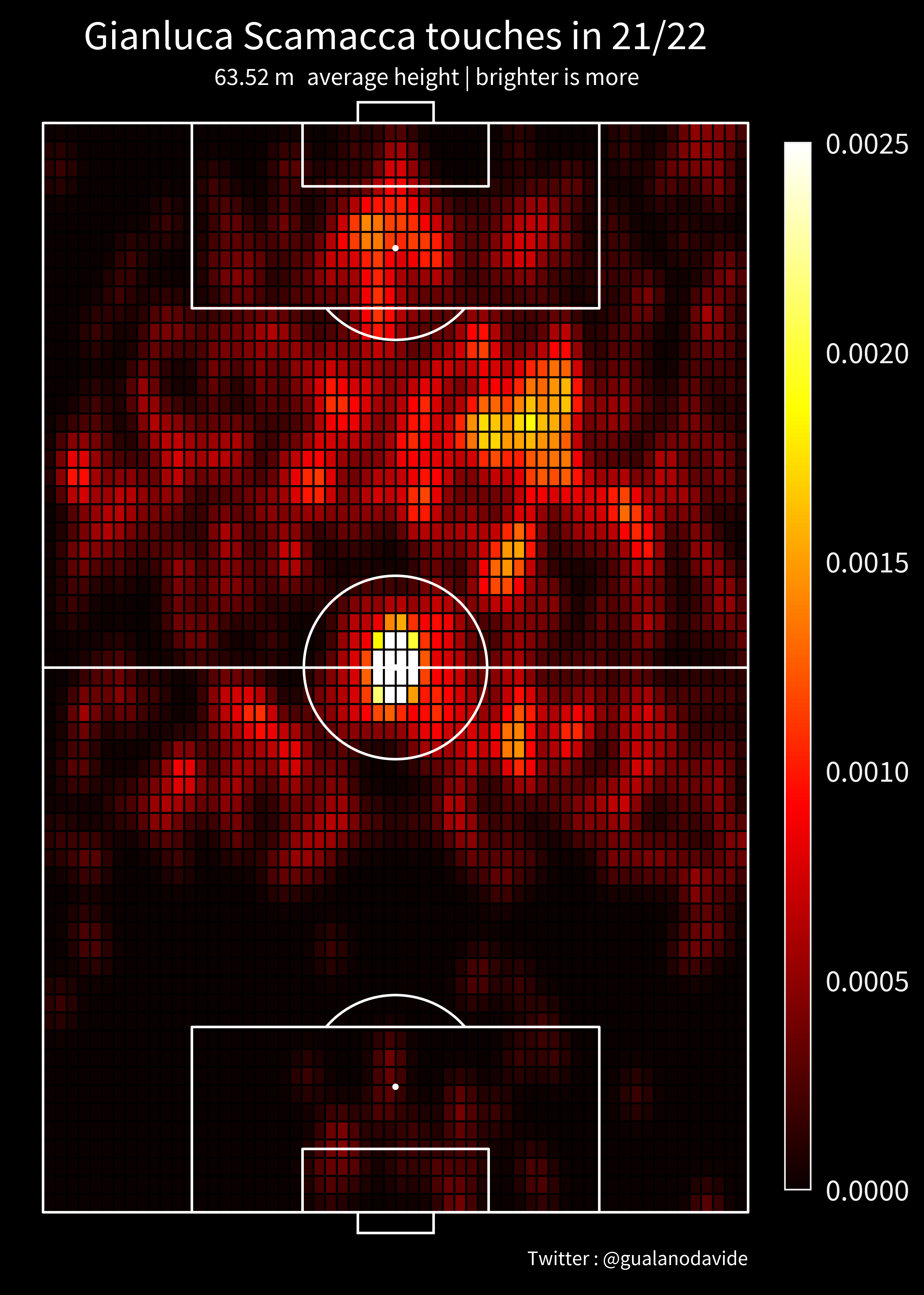 His heat map from last season also shows he has an average height a little lower than Vlahović which could also mean he would be nearer the rest of the team in many situations.